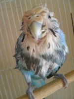 (作詞/作曲:新井 満。秋川さんの歌われるVer.も持ってるがこの時は新井さんVer.。) (・・・ええ曲です。詩がなんと言っても素晴らしい。) をBGMに、ご機嫌で水浴びに勤しんでいるぴー嬢。 このあとは、ずぶぬれの怪鳥ギャオスに変身~です。^^; 愛いヤツぢゃ☆