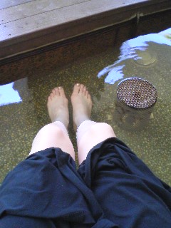 何だか頭痛がして、朝から目が点でホケ~~~~~状態でしたが、ここの天然温泉の足湯に浸かって束の間の憩い~~~